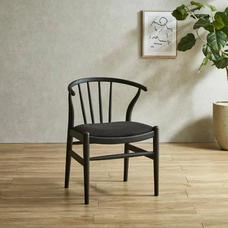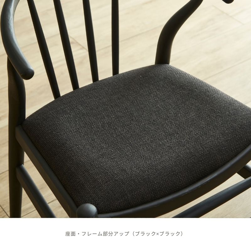 Black x Black: Black Colour Ash Wood x Black Colour Fabric Seat /