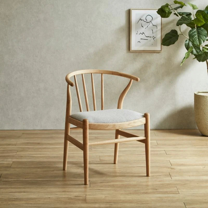 Natural x Gray: Natural Ash Wood x Gray Colour Fabric Seat /