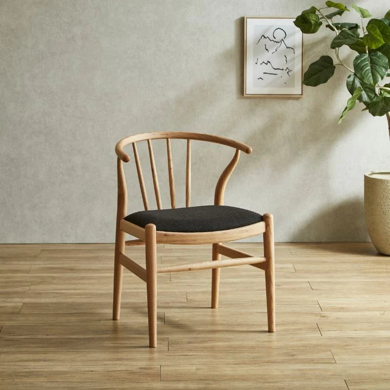 Natural x Black: Natural Ash Wood x Black Colour Fabric Seat /