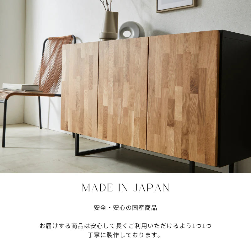 Designed for both beauty and function, the sideboard features hinged doors that open to reveal generous storage space, thoughtfully divided with adjustable shelf boards to accommodate items of varying heights. The back panel is finished to look natural from all angles, allowing the sideboard to be placed freely in open spaces—not just against a wall.
