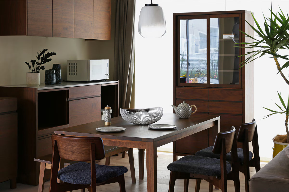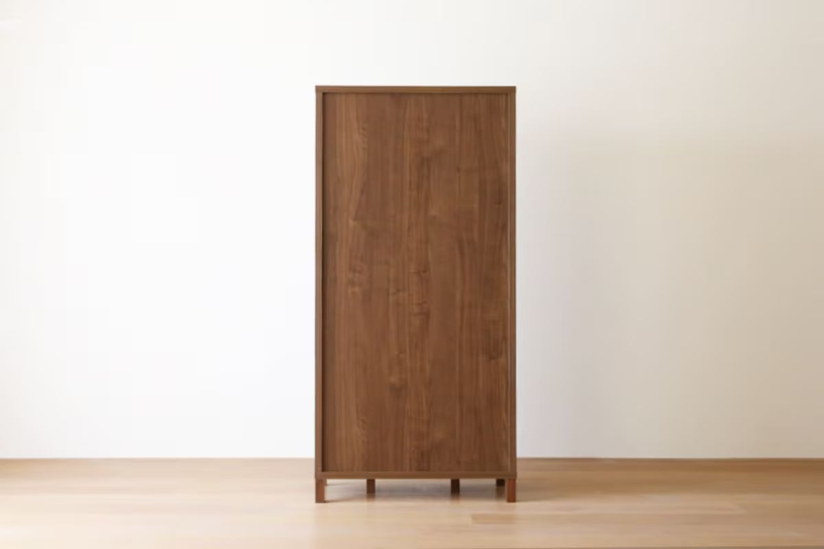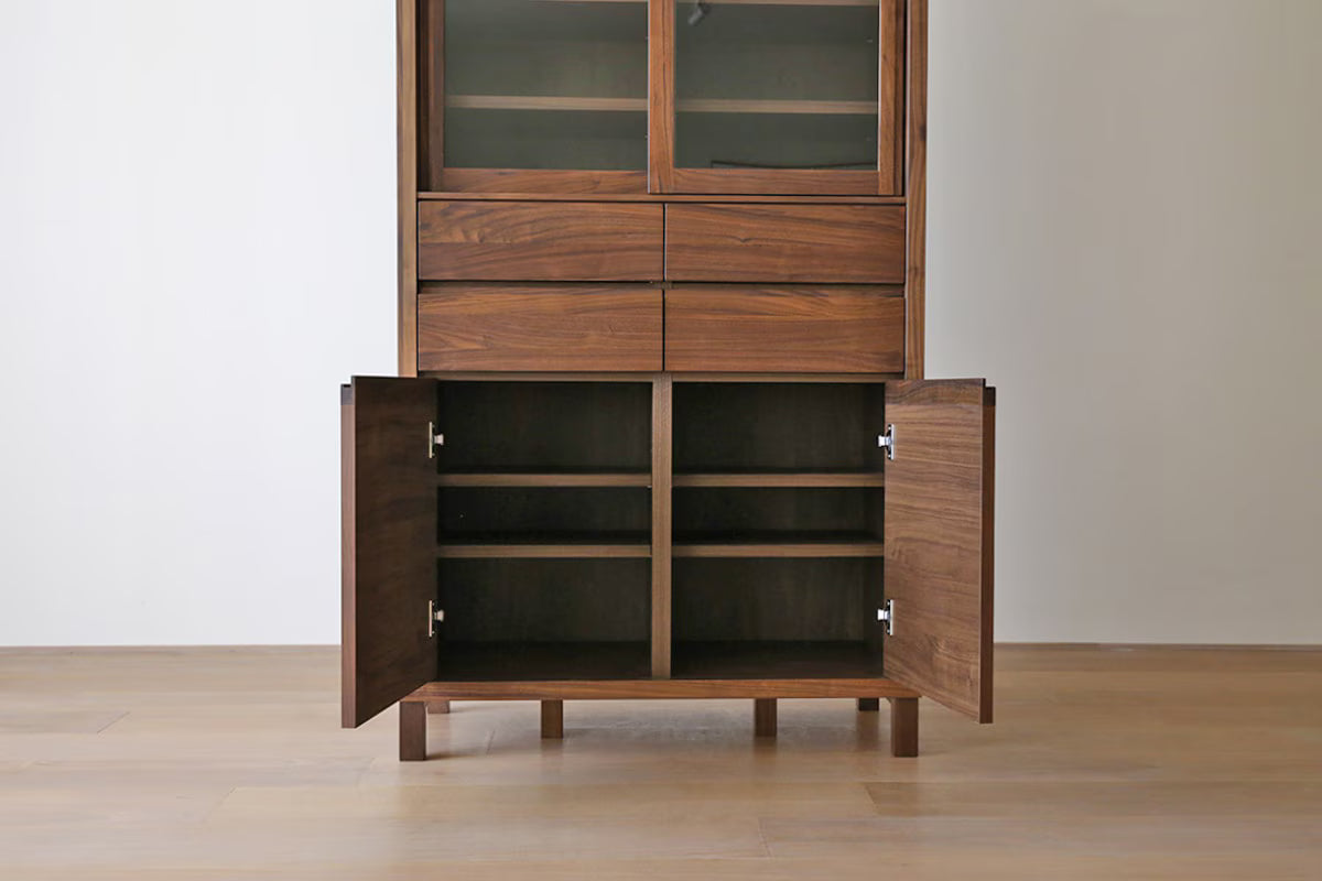 TAKANO MOKKOU - The CANO High Cabinet is a sophisticated storage solution that balances a heavy, premium presence with a sharp, modern silhouette. Designed to transition seamlessly between the kitchen and the living room, this middle-sized sideboard celebrates the rich texture of natural solid wood. Its "nostalgic-modern" aesthetic features a hint of retro charm, making it a versatile centerpiece that brings both warmth and refined organization to any interior space.
