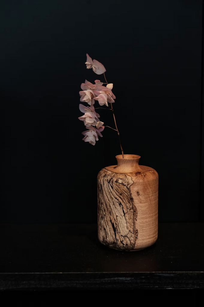 RetRe -  This is a sturdy cylindrical vase that has been carved and shaped using a lathe.