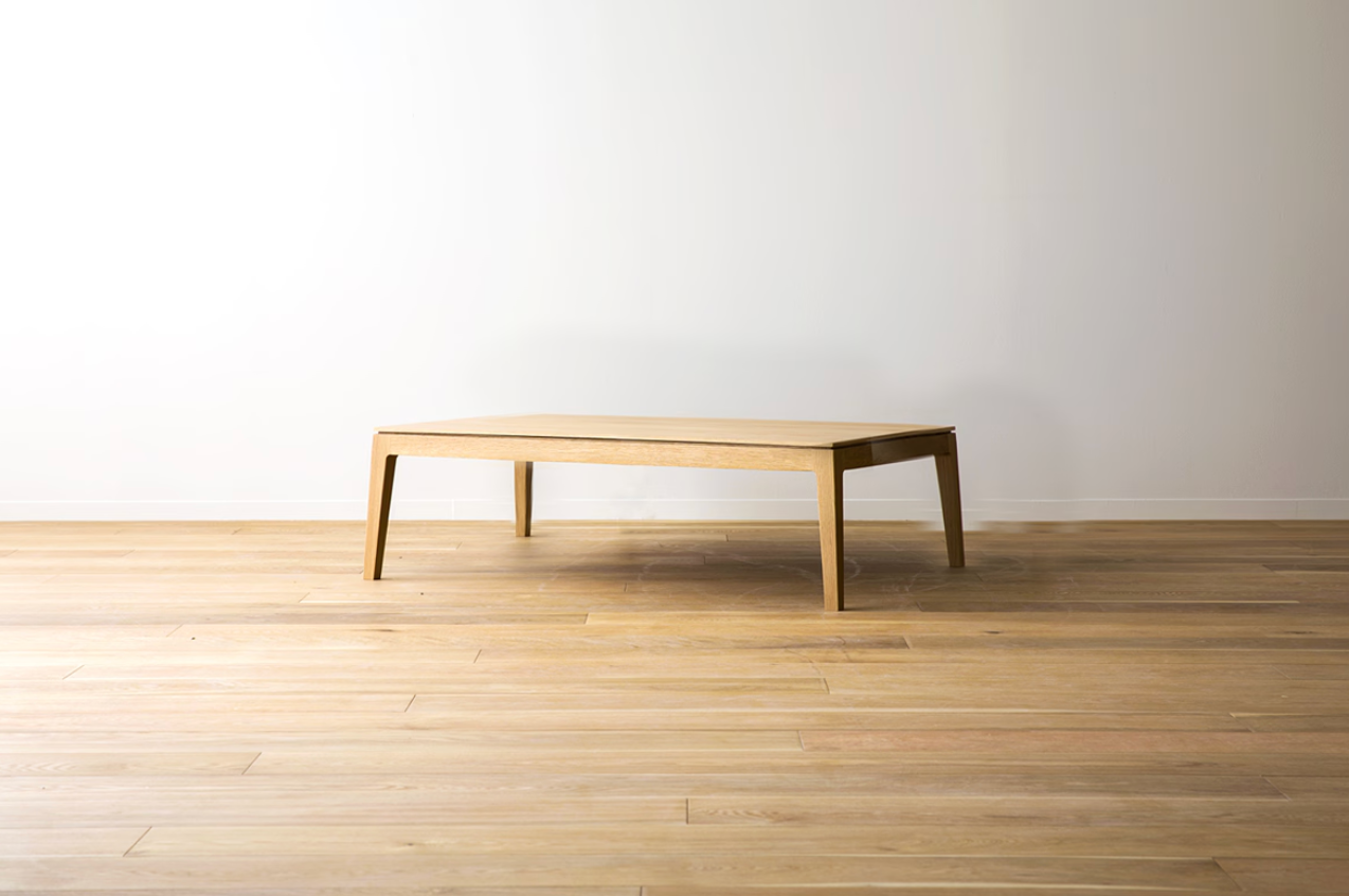 TAKANO MOKKOU - The MOL Coffee Table is a masterclass in balance, merging modern design with the soul of handcrafted artistry. Defined by its "simple beauty," this table features a clean, timeless silhouette that instantly elevates any living area. The combination of its tall, stylish legs and a meticulously slim tabletop creates a light, airy presence that feels weightless, yet it possesses the unmistakable aura of high-quality furniture that commands attention from every angle.